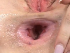 Lovesome sweetie is gaping soft vagina in close-up and havin