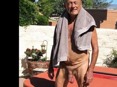 Hairy old guy with mustache plays with his boner all alone