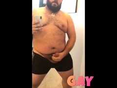 fat gay guy pisses on himself and in his mouth and cums