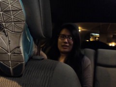 Huge tits brunette rimming in fake taxi