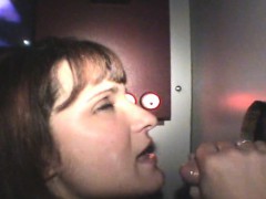 Megan Vaughn gives blowjob to strangers at Gloryhole