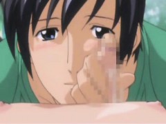 Anime slut gets jizz on her boobs