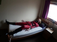 Sexy Latex Liquid Leggings with Red Stilettos Fetish