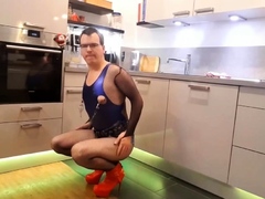 Sissy Bitch in Jeans and Leotard Swimsuit