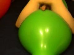 Big green balloon riding humping cum