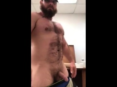 Horny Brian Bonds jerks his cock in the office