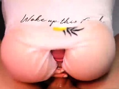 Beautiful Brunette Big Boobs Rides Fake Cock
