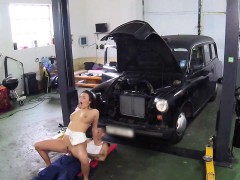 Auto mechanic fucks busty female cab driver