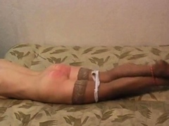 Lesbian restrained and gagged before teasing BDSM spanking