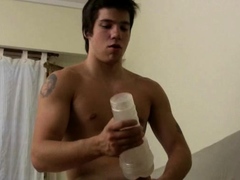 Gay boy uses a butt-splitting toy to squirt some seed